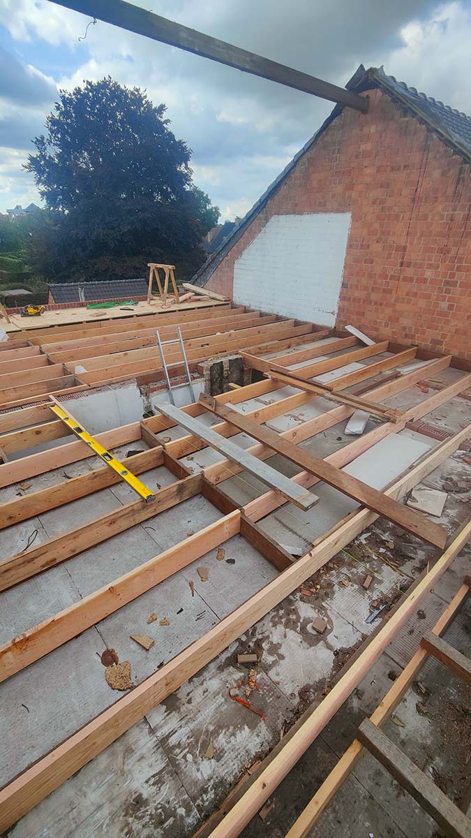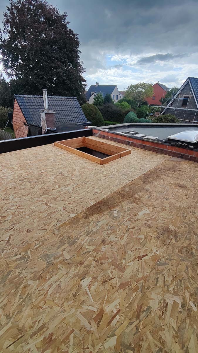 Voor dit project hebben wij de bestaande dakconstructie volledig verwijderd en vervangen door een nieuwe, stevige dakstructuur. In het dak werden Velux dakramen geplaatst om extra licht en ruimte te creƫren. Tot slot werd het dak afgewerkt met nieuwe dakpannen.