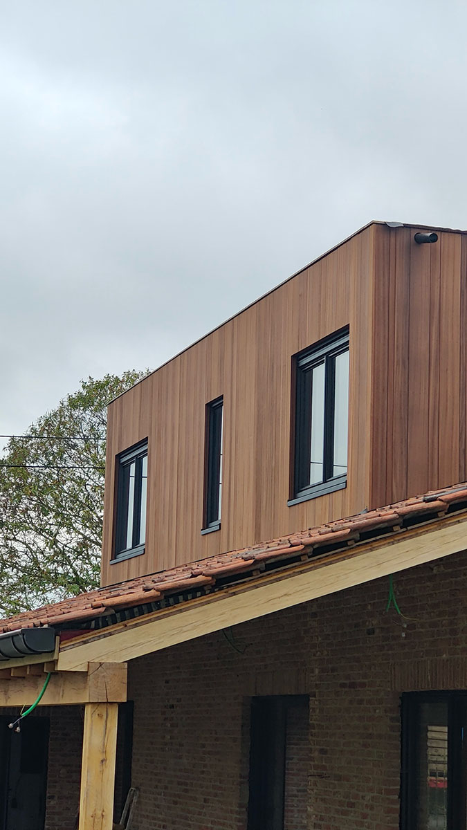 De gevel werkten we af met Thermo Ayous gevelbekleding, een houtsoort die bekend staat om zijn duurzaamheid, vormvastheid en warme uitstraling.